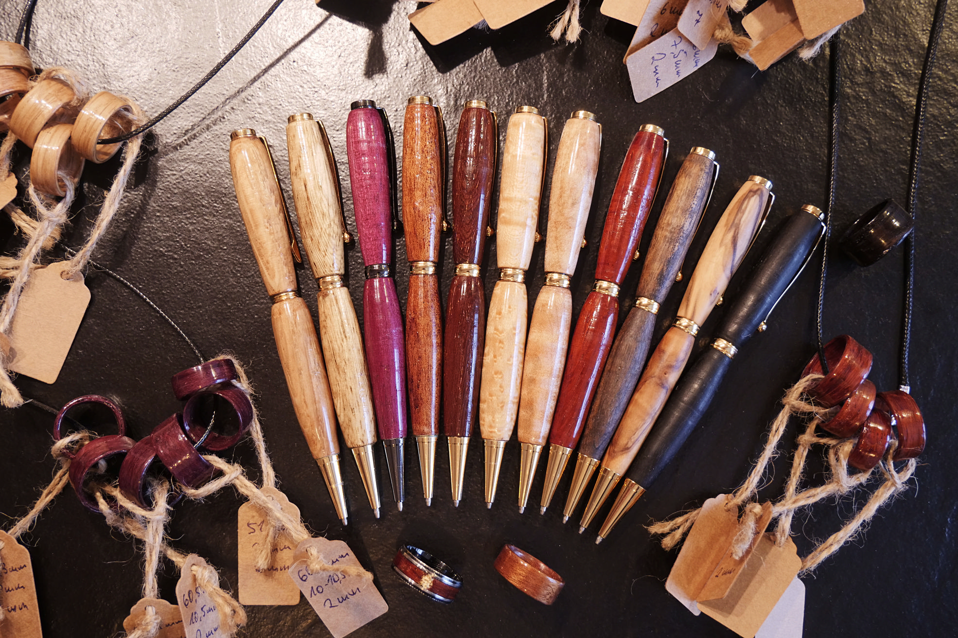 Es sind zudem zur Fertigung direkt verfügbar: Okuome, Spitzahorn, Eiche, Vogelaugenahorn, Platane, Wenge. Andere Hölzer können kurzfristig besorgt werden.